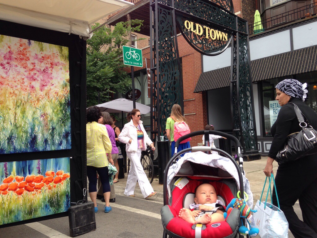 我們也帶著 Chelsea 到芝加哥城市北邊的 Lincoln Park 區裡的農民市場去逛逛。好奇貪玩的 Chelsea 看到街上各種新奇的事物,總是被吸引的目不轉睛。不過沒多久,就會昏睡過去 XD