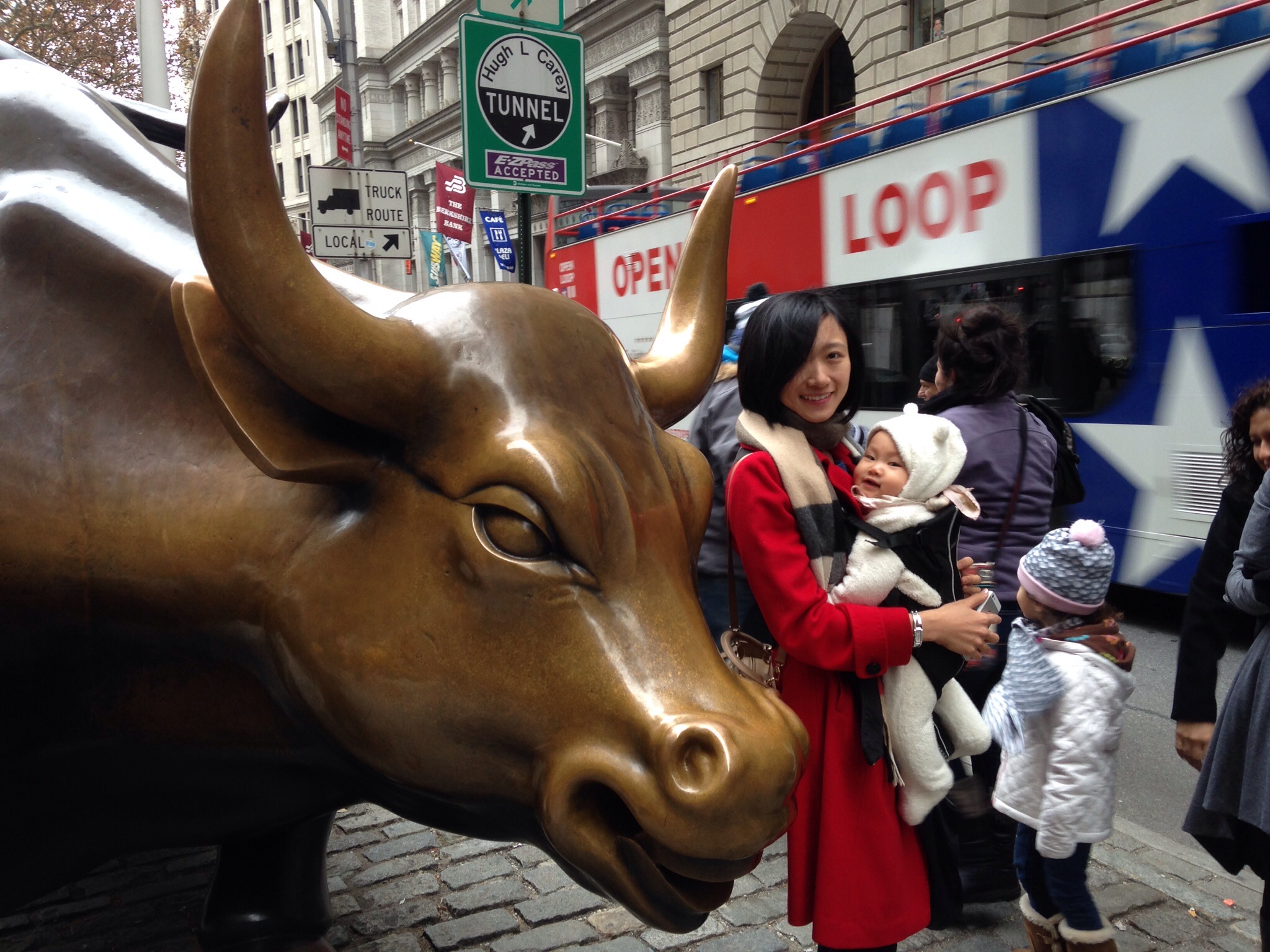 臨走前,當然得跟華爾街的著名地標 – 大金牛合個影。這頭牛代表了一個趨勢,僅管世界紛紛擾擾,每個時期,總會奏起一個主旋律,這節奏時快時慢,曲調時高時低,音量時強時弱,想聽清楚,得把自己縮到最小,把世界放到最大。眾人的情緒則隨著音樂起伏,偶爾暴喜暴怒。要不隨著大眾起舞,時時必須保持冷靜。只有如此,才能凌駕於趨勢之上,不為生活與生存所奴役。