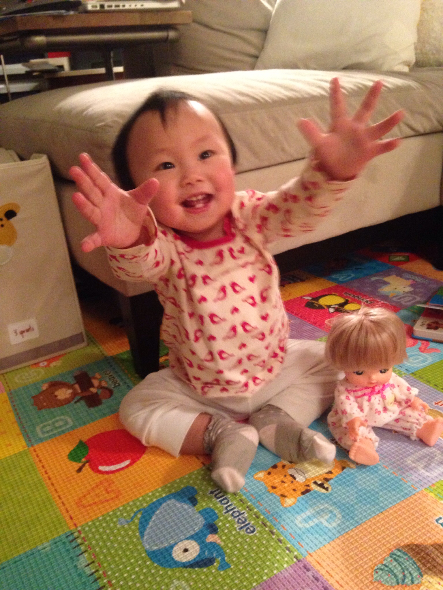 我們也收到 Chelsea 姑姑一家從日本寄來的生日禮物。盒子裡有日本的米餅跟扮家家酒的餐具,Chelsea 最近學會分享,把玩著玩具的同時,也會試著跟周圍的人一起玩,越來越有一個大寶寶的樣子了。