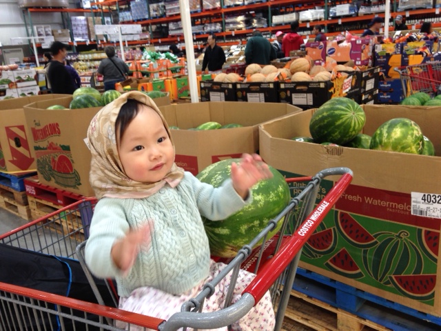 走著走著,我們來到了農場區,想說 Chelsea 在家裡看了許多農場動物圖鑑,來這裡見識見識真的。首先,我們看到了許多的乳牛,Chelsea 一見到牛,嚇得全身發抖,不敢下來自己走路。