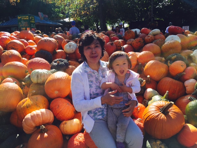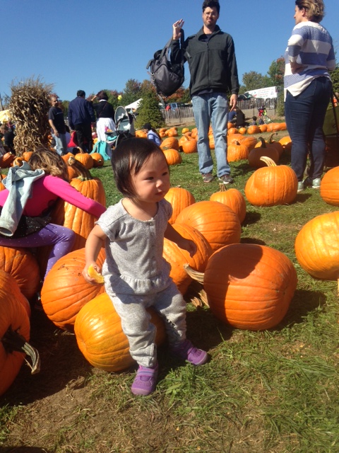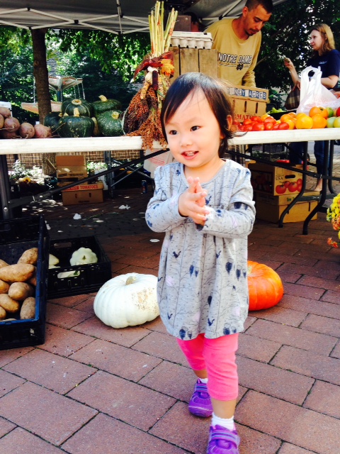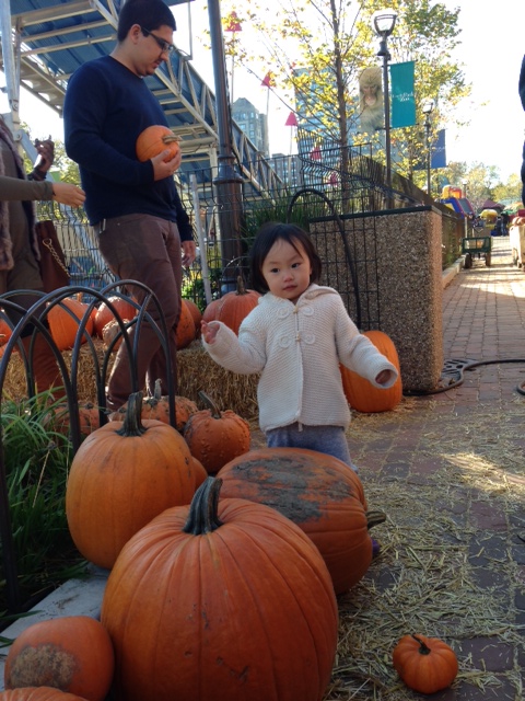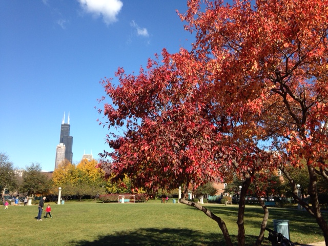 秋天楓葉紅了,芝加哥城市裡到處可見紅色的楓葉,Chelsea 也來公園賞楓。