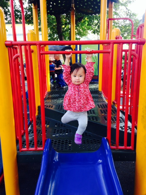 回家吃飯睡了個午覺後,Chelsea 下午到另一個大滑梯公園玩。