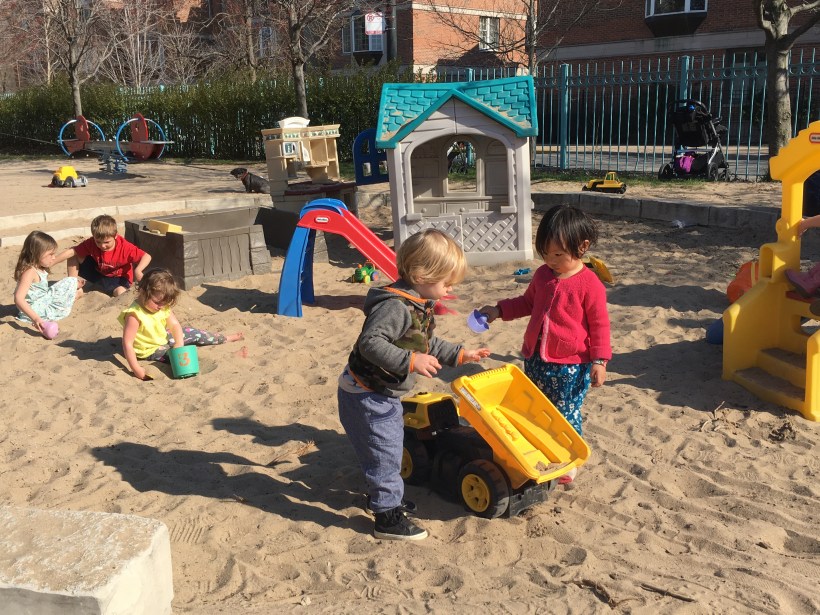 溫暖的午後,Chelsea 到家附近久違了的沙坑玩沙。等了一整個冬天,好多小朋友也趁著天氣溫暖到公園來玩。