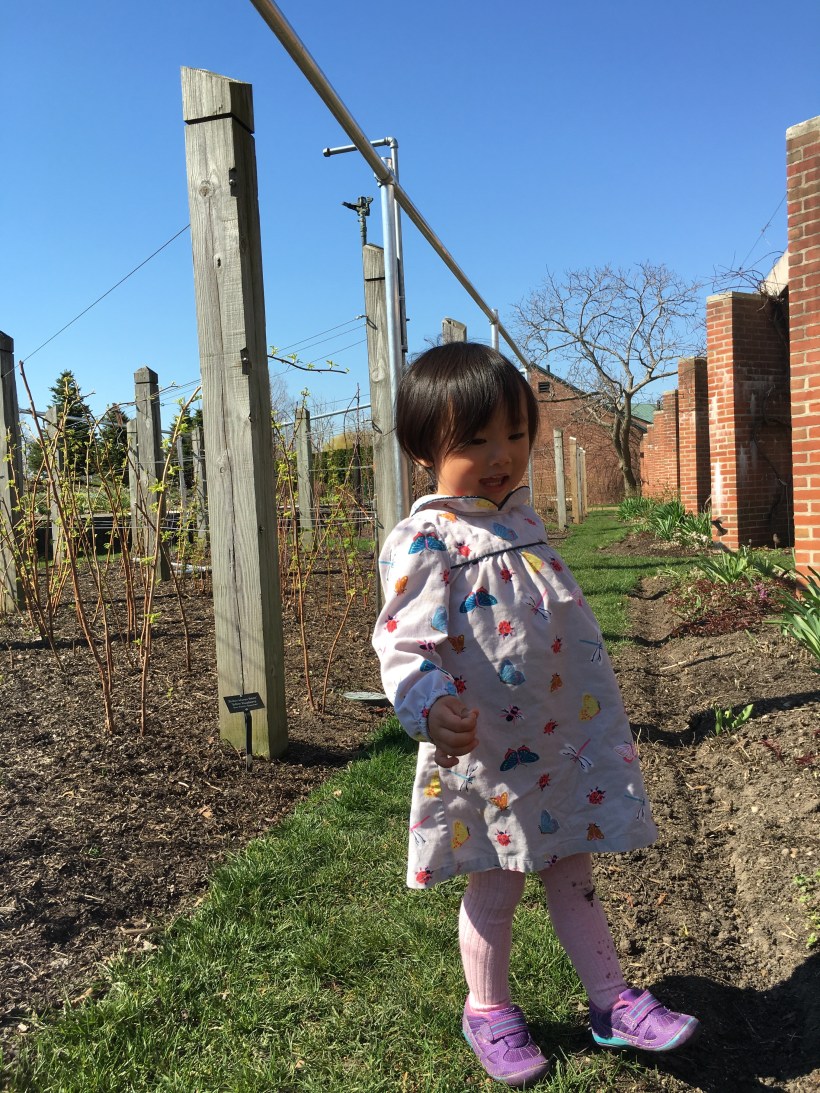 隔天一早,我們帶著 Chelsea 來植物園,看看春暖是不是有許多的花也跟著開了。Chelsea 在農作物區,吵著要種菜。