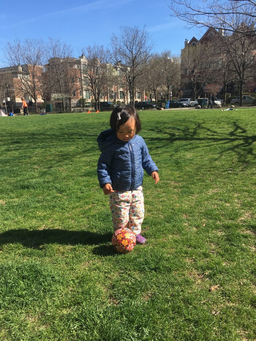 這週末,天氣不錯,Chelsea 又帶著小皮球到小公園來踢球,現在球踢得越來越好,也對踢球越來越有興趣。