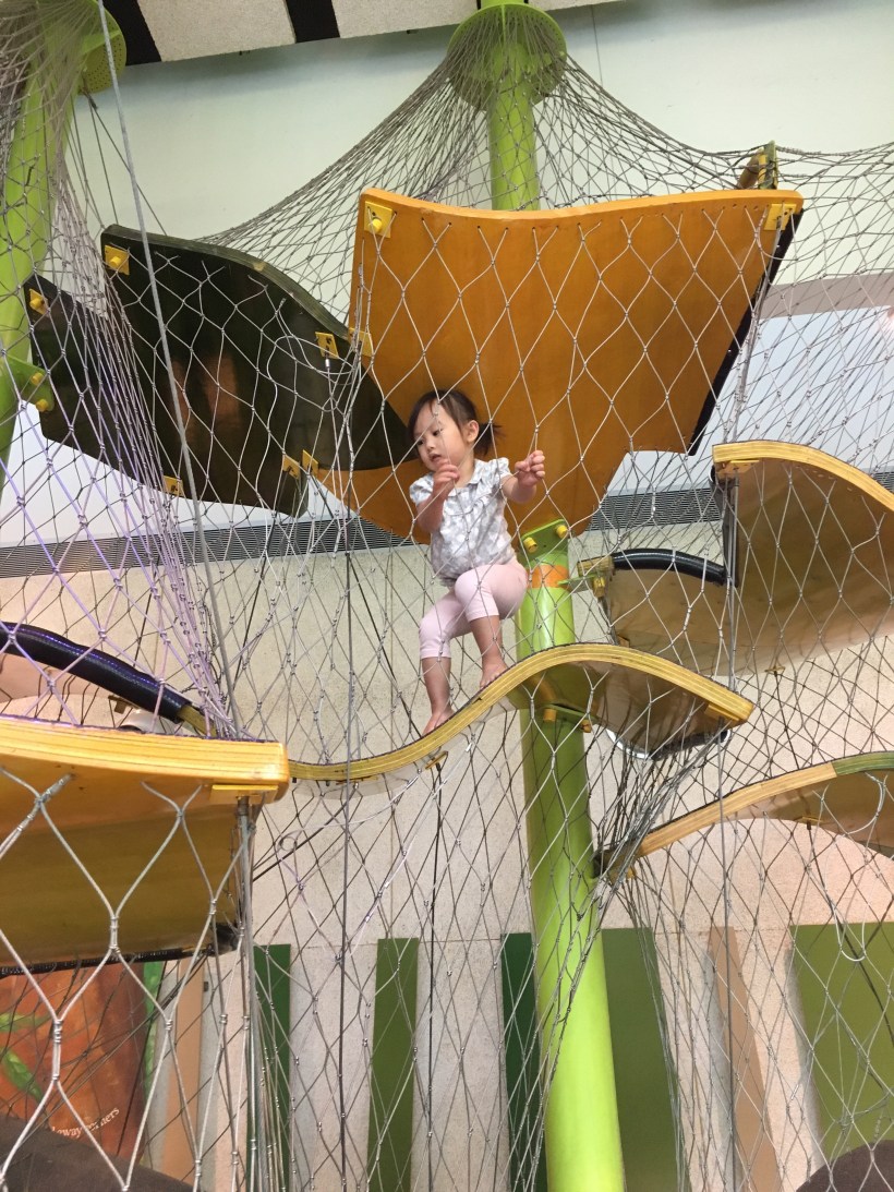 看 Chelsea 這麼地好動,我們帶她到動物園附設的室內遊樂場玩攀爬迷宮,Chelsea 在迷宮裡爬上爬下,架勢十足。