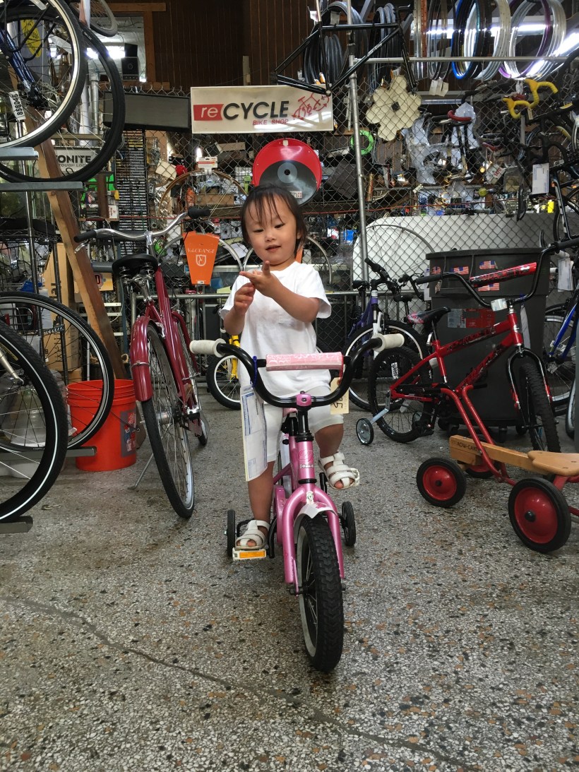 下午睡完午覺,我們帶著 Chelsea 來買腳踏車。趁著夏天天氣好,Chelsea 可以跟著媽媽騎車出去玩。