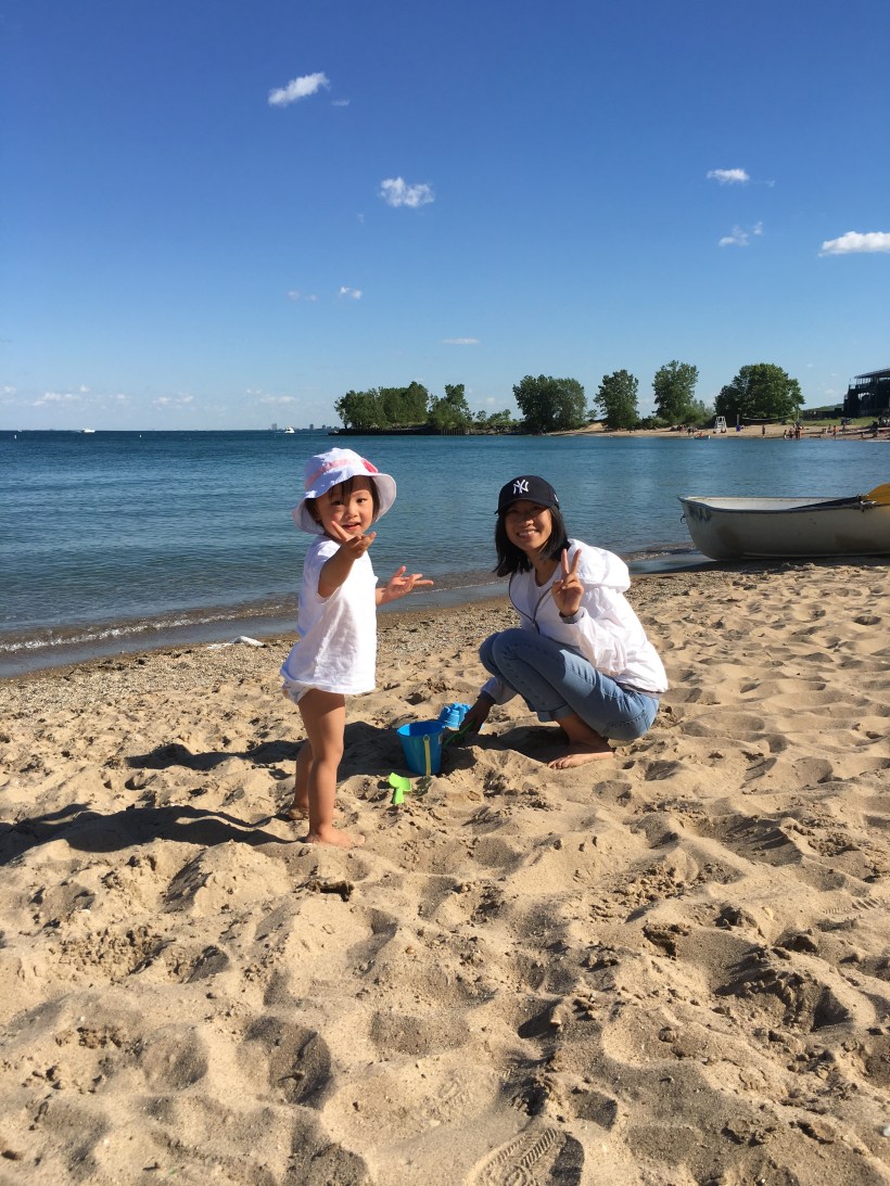 終於到沙灘了,Chelsea 拿出玩沙組,開始堆城堡。我們最後也在沙灘上買食物野餐,享受芝加哥珍貴的夏日時光。