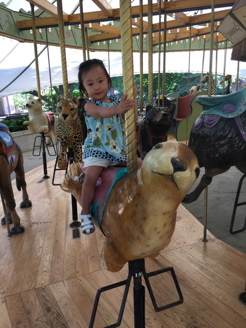 臨走前,Chelsea 又要來玩旋轉木馬,這次騎的是一隻很可愛的海豹。
