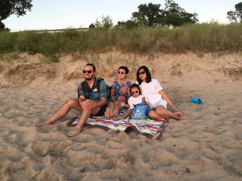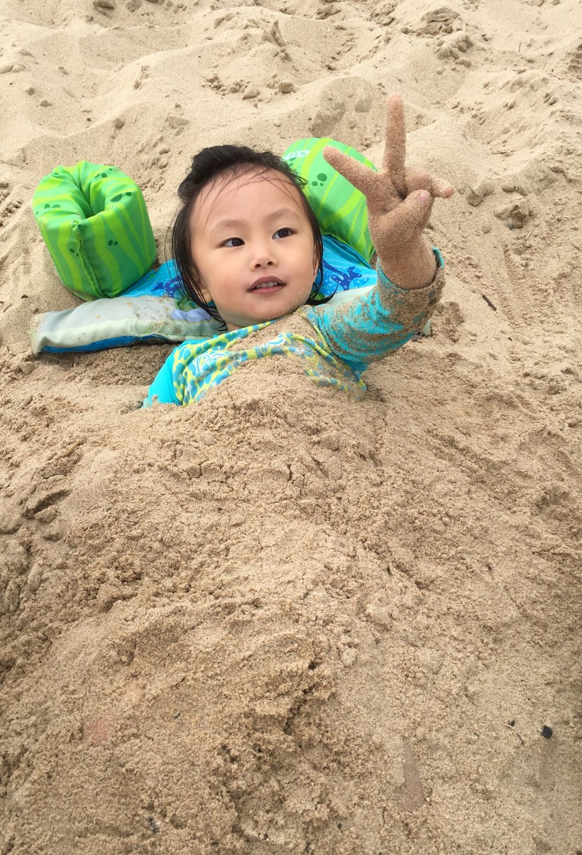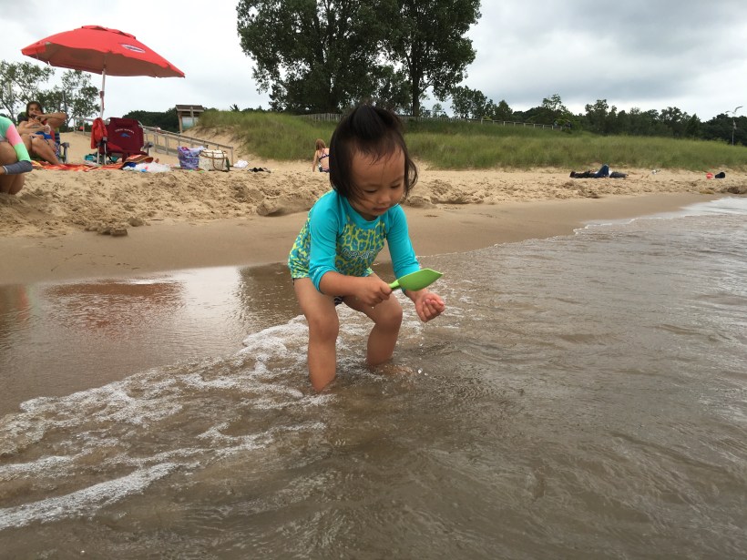 我們一到 Saugatuck,馬上來這遠近馳名的 Oval Beach,踩踏柔細的白沙,浸泡溫暖的湖水,Chelsea 也在這做起泥沙浴,享受這悠閒的午後。