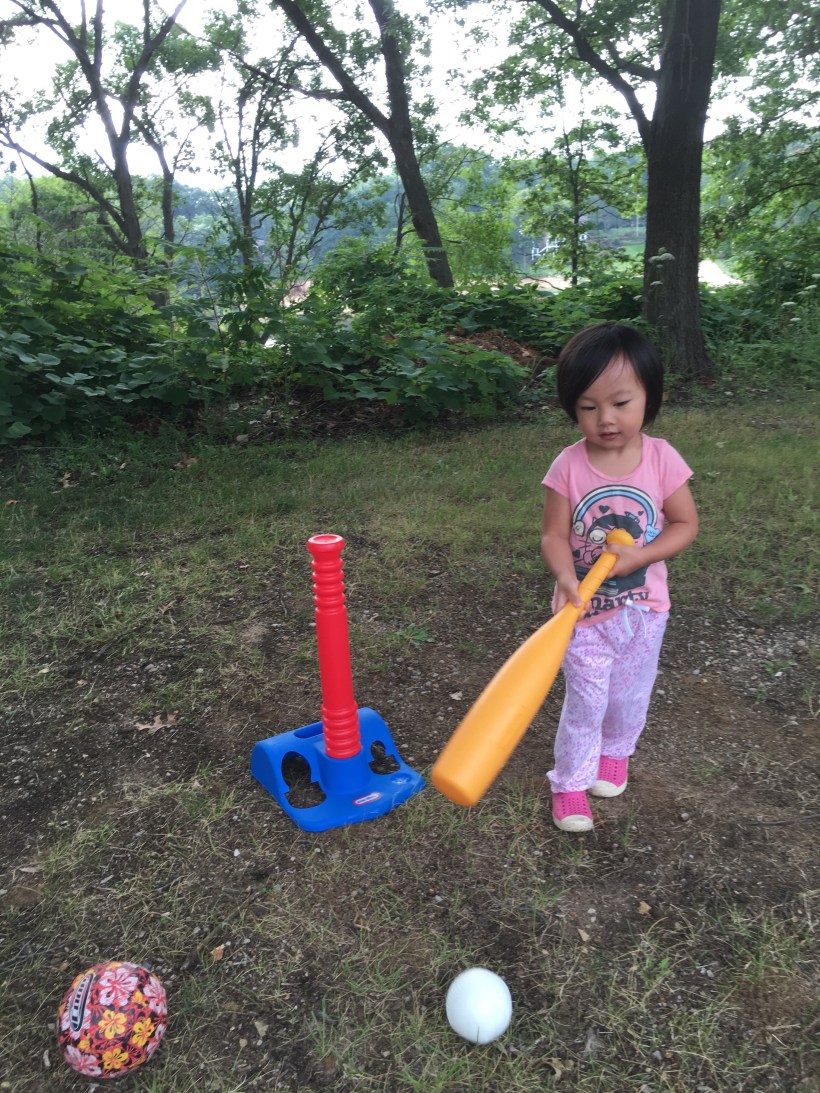 我們住在小湖邊的一個小木屋,Chelsea 跟我們一起烤肉、泡溫泉。小木屋旁有一塊小草地,Chelsea 一大早就在這裡練習打棒球、踢足球。
