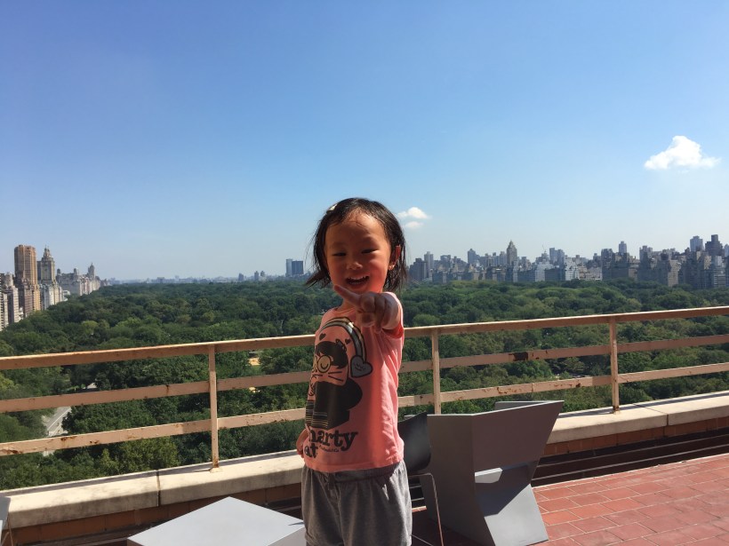Chelsea 跟著爸爸一起在紐約出差了一個星期後,準備要回芝加哥了。臨走前,我們到短期租的公寓頂樓公共露台看風景拍照留念。在這露台上,整個中央公園,幾乎盡收眼底。