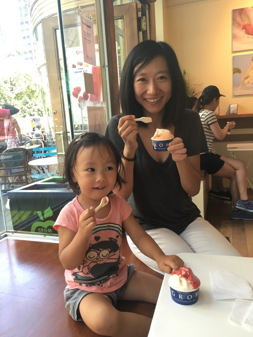 搭車去機場前,我們來到樓下的小冰店再吃碗冰,Chelsea 也捧著一碗,吃得十分滿足。