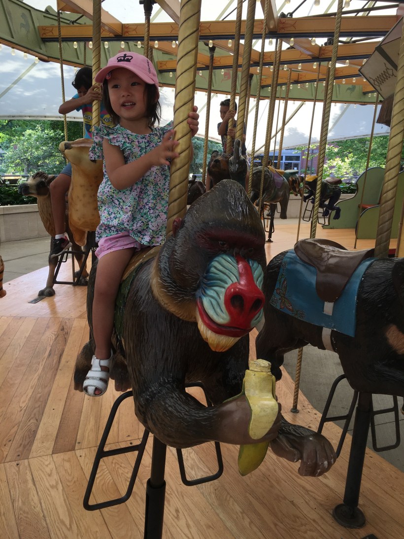 當然也得來騎騎旋轉木馬,這次騎的是吃香蕉的猴子,貪吃的模樣跟 Chelsea 有幾分相似 😀