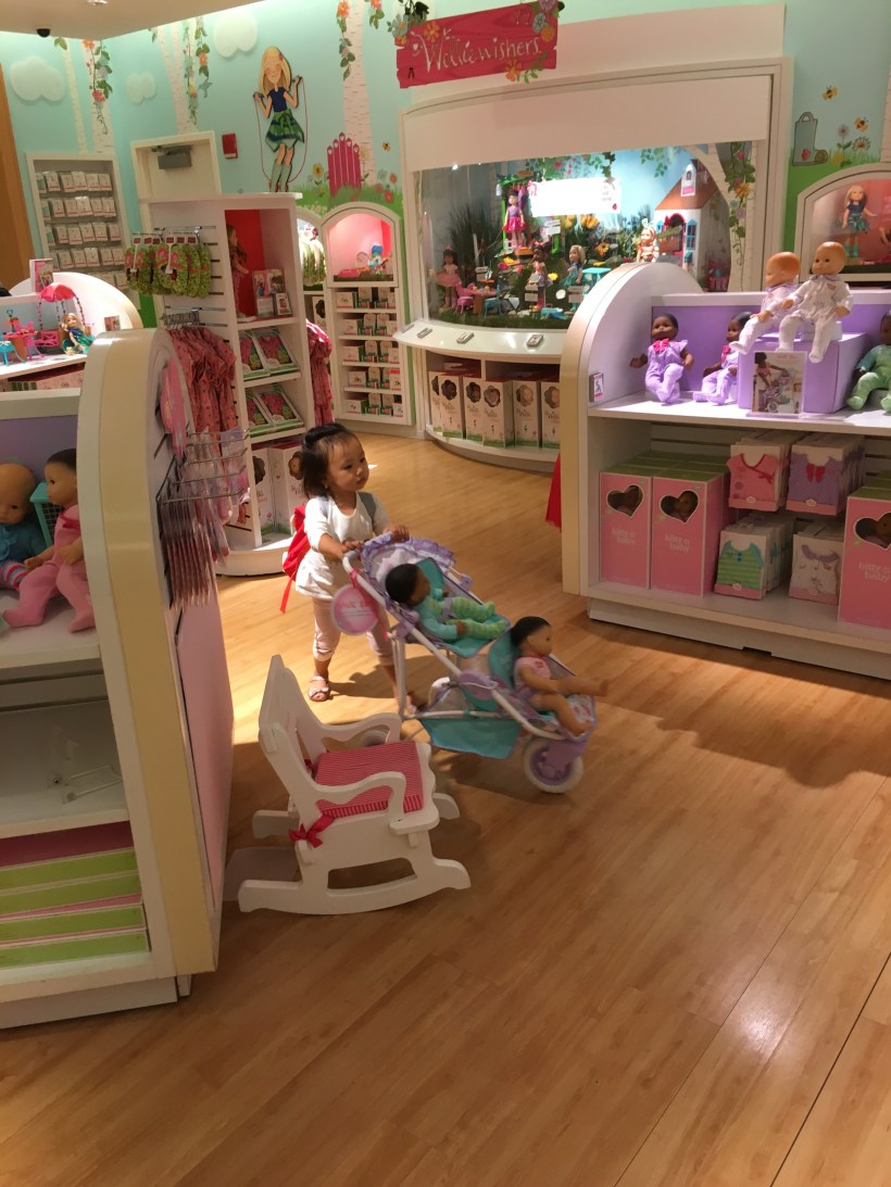 野餐會結束後,我們帶 Chelsea 到旁邊的商場逛逛,商場裡的 American Girl 玩具店,是 Chelsea 的最愛,這次發現了幫寶寶洗澡的澡盆沖水組。