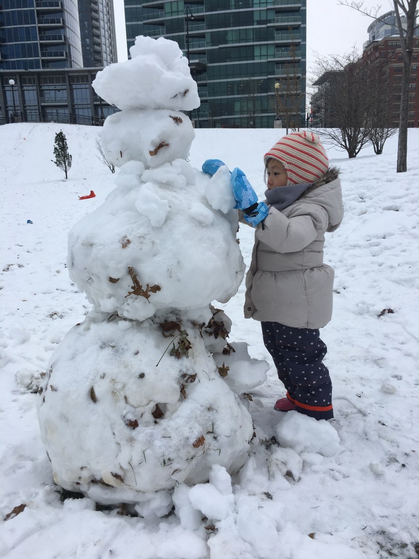 玩完雪橇,Chelsea 來堆雪人,想做一個 Frozen 裡的雪人 Olaf。