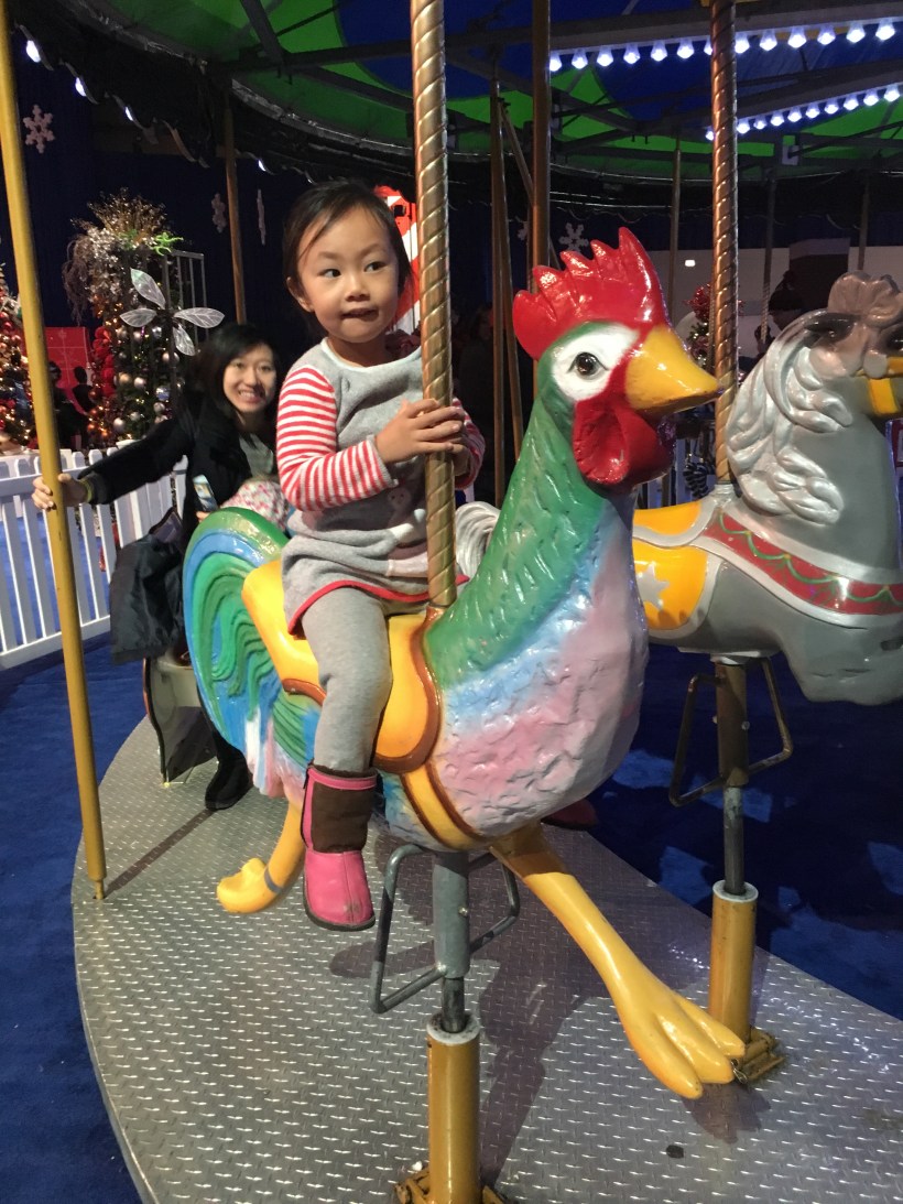 Chelsea Tsai – New Year to Wonderland at Navy Pier – January 2017 January 6, 2017 by pinghantsai Leave a comment 這週末是新年元旦,我們帶 Chelsea 到 Navy Pier 一年一度的冬季室內遊樂園玩,體會歡樂的跨年氣氛。Chelsea 一進來馬上來玩旋轉木馬,騎上了一隻雞,為即將到來的雞年暖身。 Chelsea 接著來挑戰氣墊滑梯。去年來還玩得跌跌撞撞,這次已經可以自己走完全程,一遍接一遍,樂此不疲。 遊樂園裡也裝飾著許多聖誕佈置,巨型聖誕樹在燈光的點綴下十分耀眼,歡樂溫馨的氛圍,讓 Chelsea 十分開心。 Chelsea 來跟媽媽一起扮聖誕小矮人,跟大家祝賀新年快樂。 Share this: Share on X (Opens in new window) X Share on Facebook (Opens in new window) Facebook Like Loading... Related