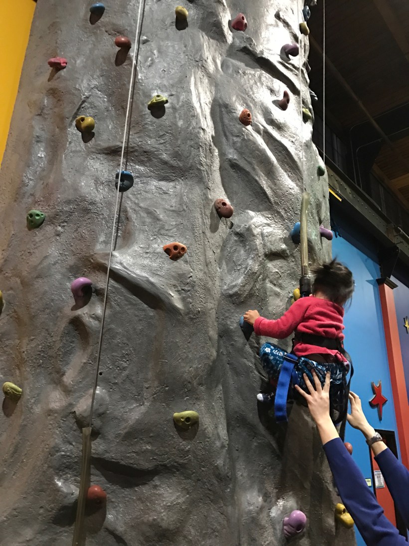 玩完滑梯,Chelsea 也來嘗試攀岩,第一次攀岩的 Chelsea 小心翼翼地確認一切是否安全,才緩步向上爬。