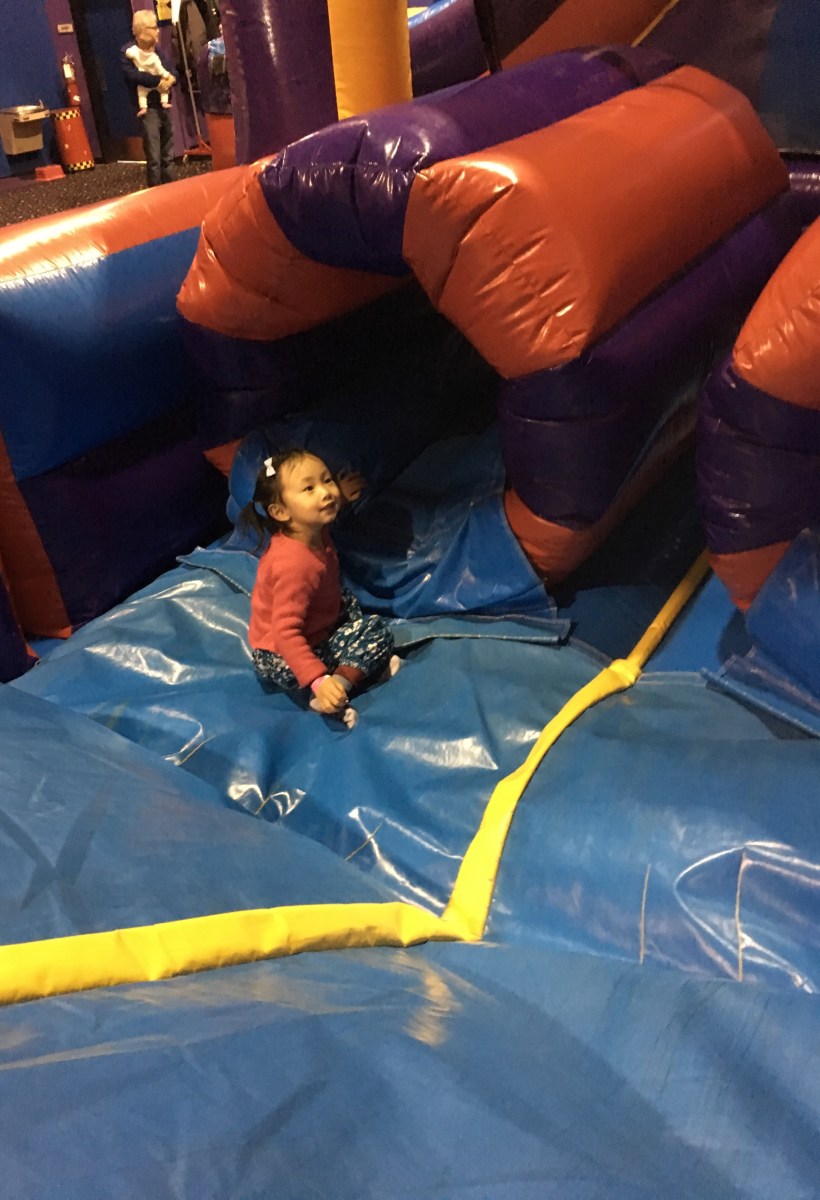 這週末,Chelsea 受邀來參加爸爸主管大女兒-Natalie 的兩歲生日派對,派對在一個兒童室內樂園舉辦,裡面有各種各樣的充氣滑梯與蹦蹦床。