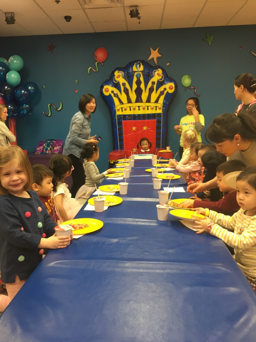 星期日一早,Chelsea 在一個兒童室內充氣滑梯樂園舉辦三歲生日派對,邀請同學與鄰居來參加,愛熱鬧的 Chelsea 很開心地當起主人,招待來慶生的小朋友們。