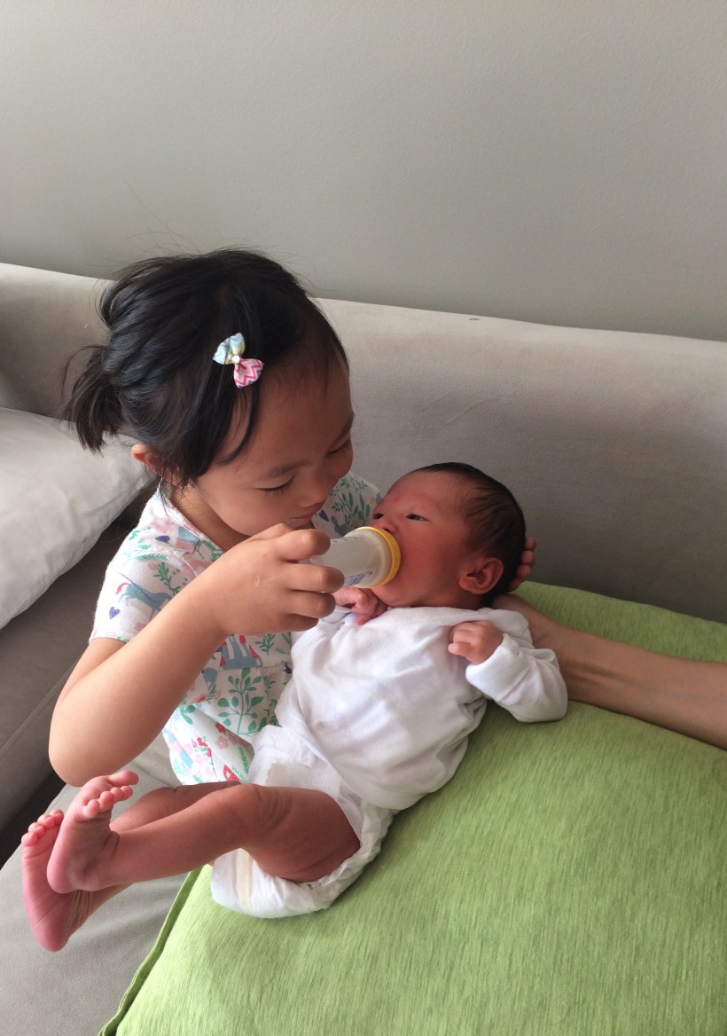 Florence 在醫院觀察了兩天後,ㄧ切正常,可以跟著媽媽出院回家。Florence 穿上當年 Chelsea 出院時的小熊裝,讓我們想起三年前的小 baby Chelsea,現在ㄧ轉眼成了大姐姐。