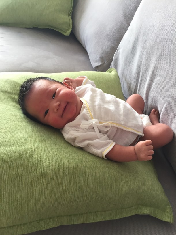 六週大的 Florence,沒法跟著 Chelsea 一起出去玩,只好在家裡的嬰兒遊戲墊上野餐。