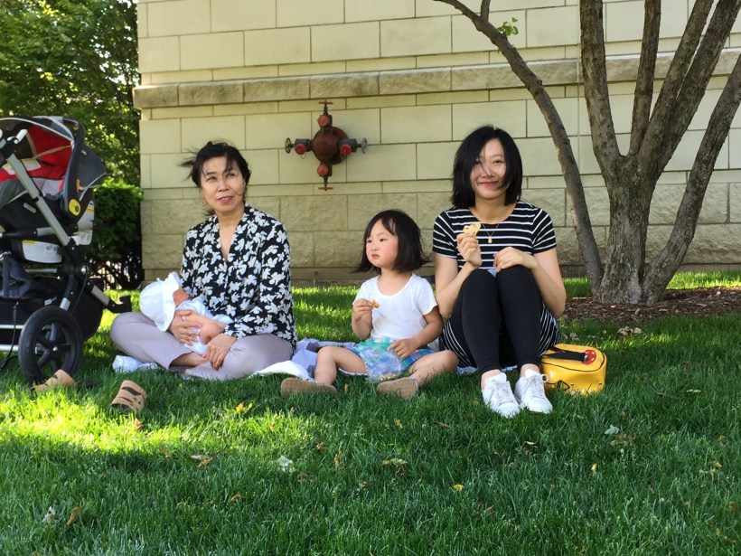 天氣溫暖的夏日,芝加哥到處都很適合野餐,這天我們帶著 Chelsea 跟 Florence 散步到家附近的公園玩,累了就在一旁的草地上野餐休息。
