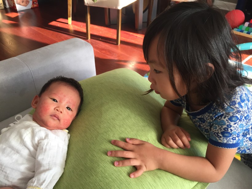 可惜,Florence 還太小,只好用剛學會的微笑來回應姐姐。