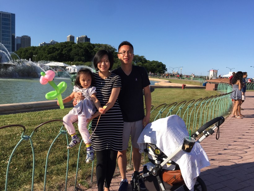 不死心的 Chelsea,回家後約上全家一起走路去美食節。美食節上人山人海,許多芝加哥當地的餐廳都來參展。我們在活動後方的白金漢噴泉附近找草地野餐,品嚐了幾樣美食節裡的小吃。