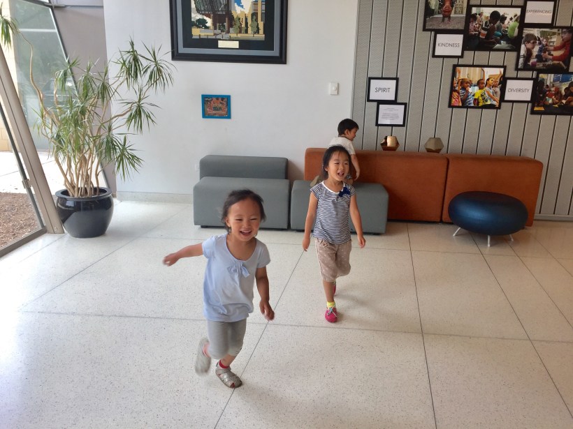 Chelsea 跟好朋友ㄚㄚ、大寶,玩得更加瘋狂,常常放學還捨不得離開,在學校大廳跑跳打鬧。