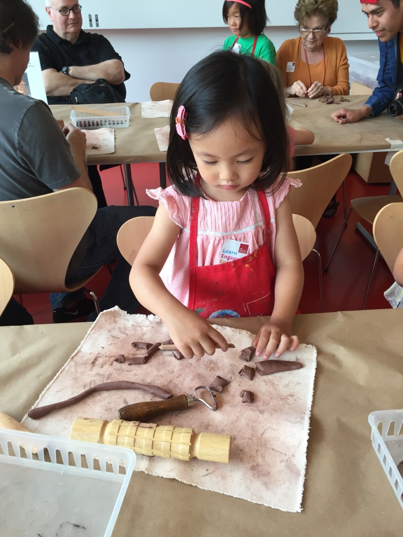 週末,美術館舉辦家庭日活動,提供各式各樣的美術活動讓大人小孩一起同樂,Chelsea 認真地做黏土創作。