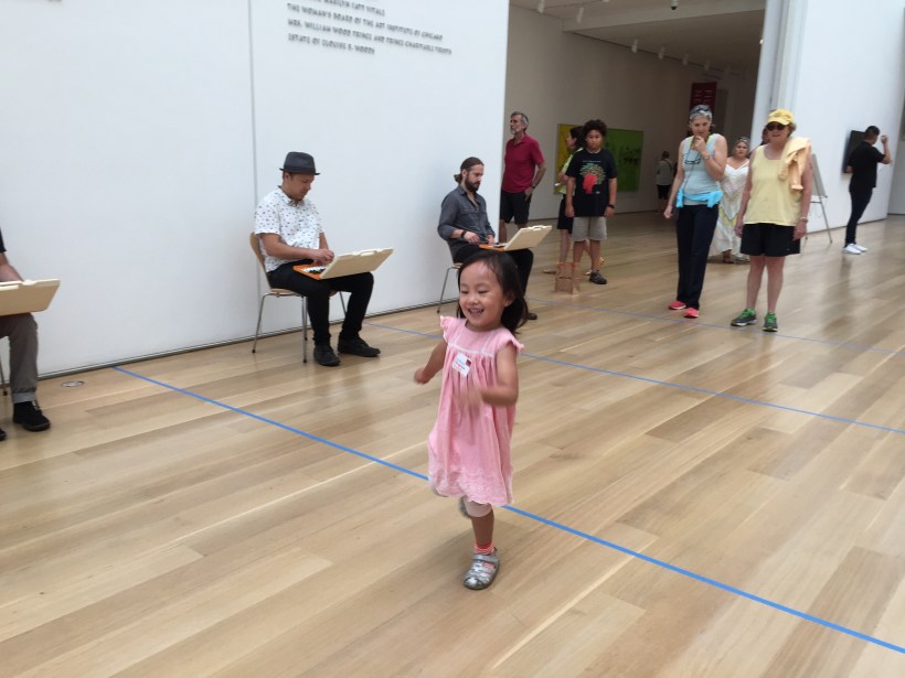 聽見美術館裡的即興鐵琴表演,Chelsea 開心地跟著唱唱跳跳。
