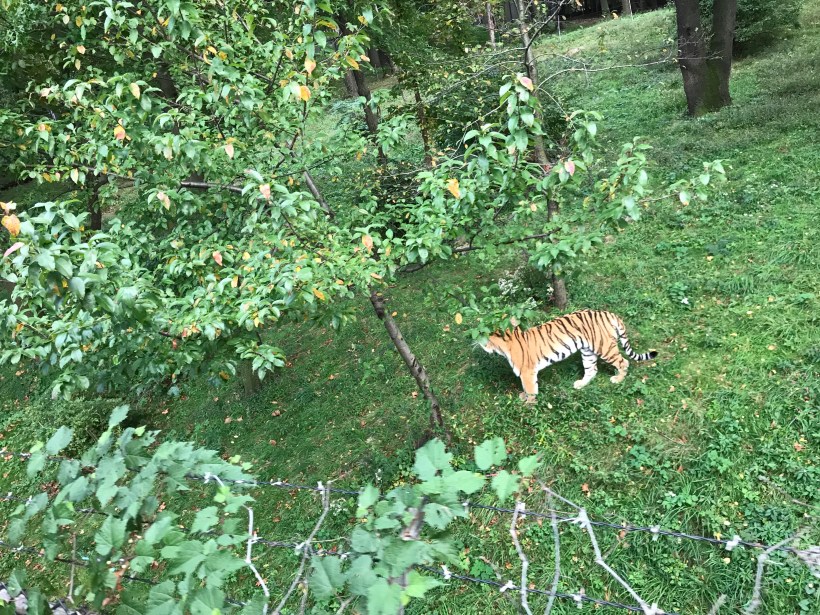 今天遊園小火車到老虎區時,正好碰上老虎在附近散步。