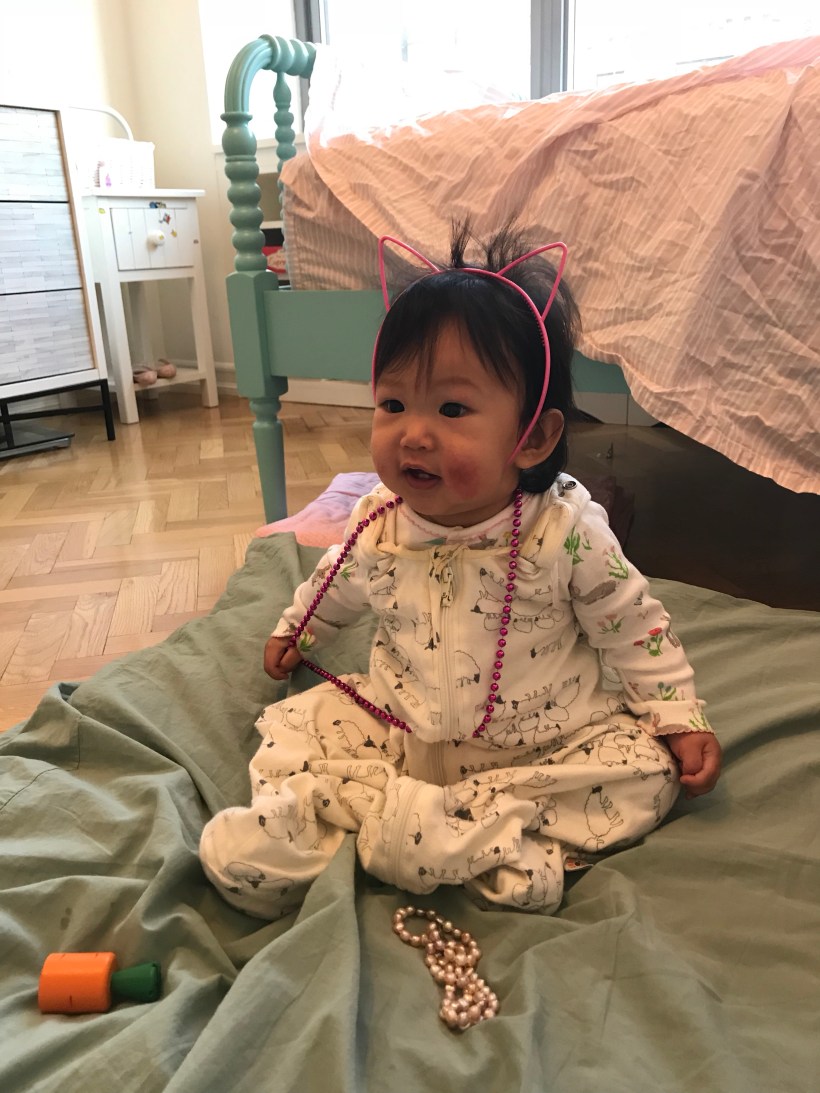 Florence 最喜歡到姐姐房間來玩,這次拿出了一些小女孩裝飾打扮的東西,扮成一個小公主。