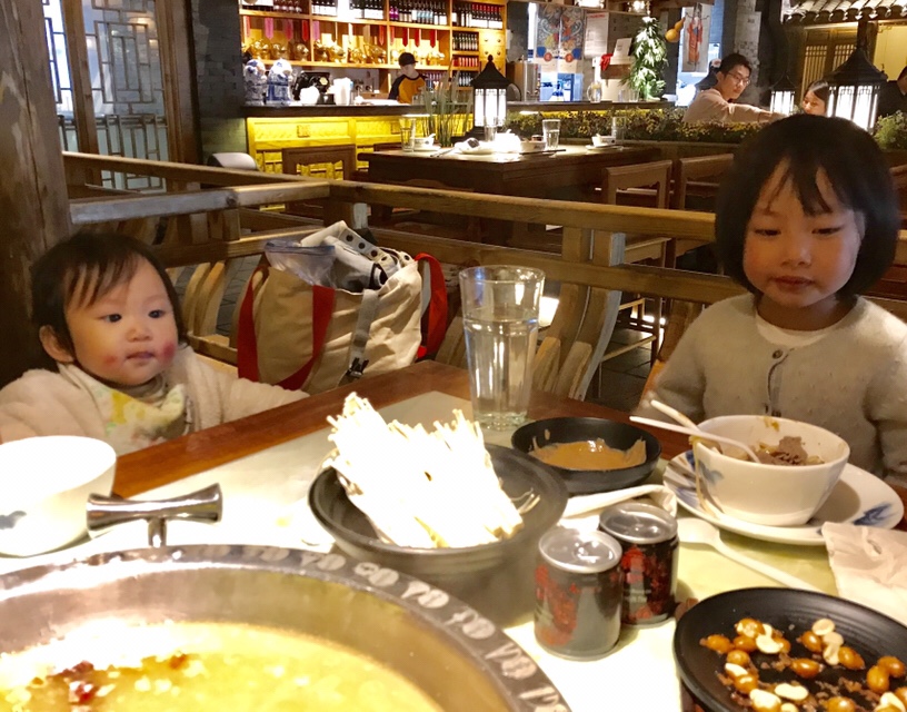 週日,Chelsea 感冒好多了,我們帶著姐妹倆到法拉盛吃火鍋。第一次吃火鍋的 Florence,好奇地在一旁端詳這新奇的東西。Chelsea 則是早按耐不住地要大快朵頤一番。