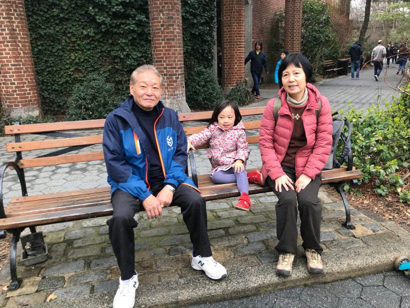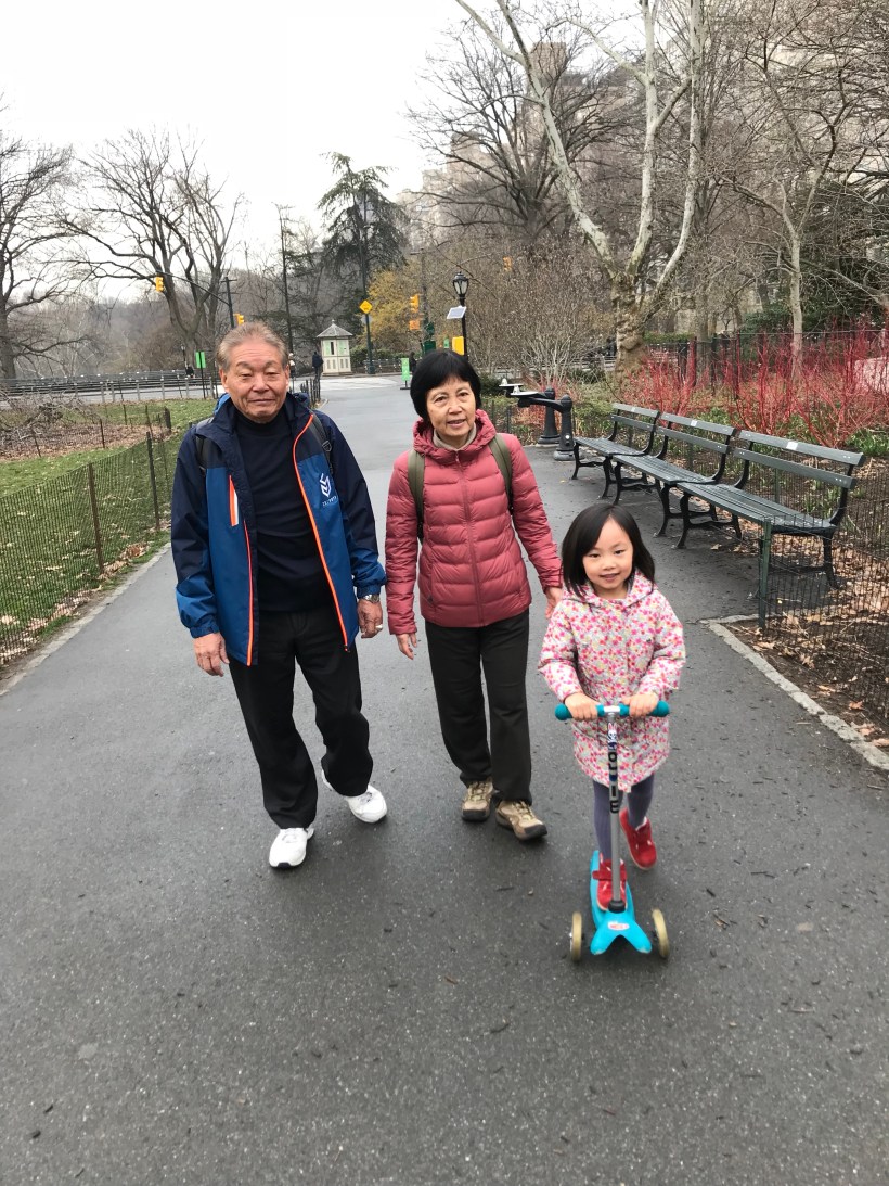 三月份,媽媽帶著 Florence 回大同辦事情,Chelsea 待在紐約上學,阿公、阿嬤也來幫忙照顧。紐約今年的春天比較冷,我們大多待在家裡休息,一直到三月底,天氣稍微回暖,我們才出來到中央公園散步。