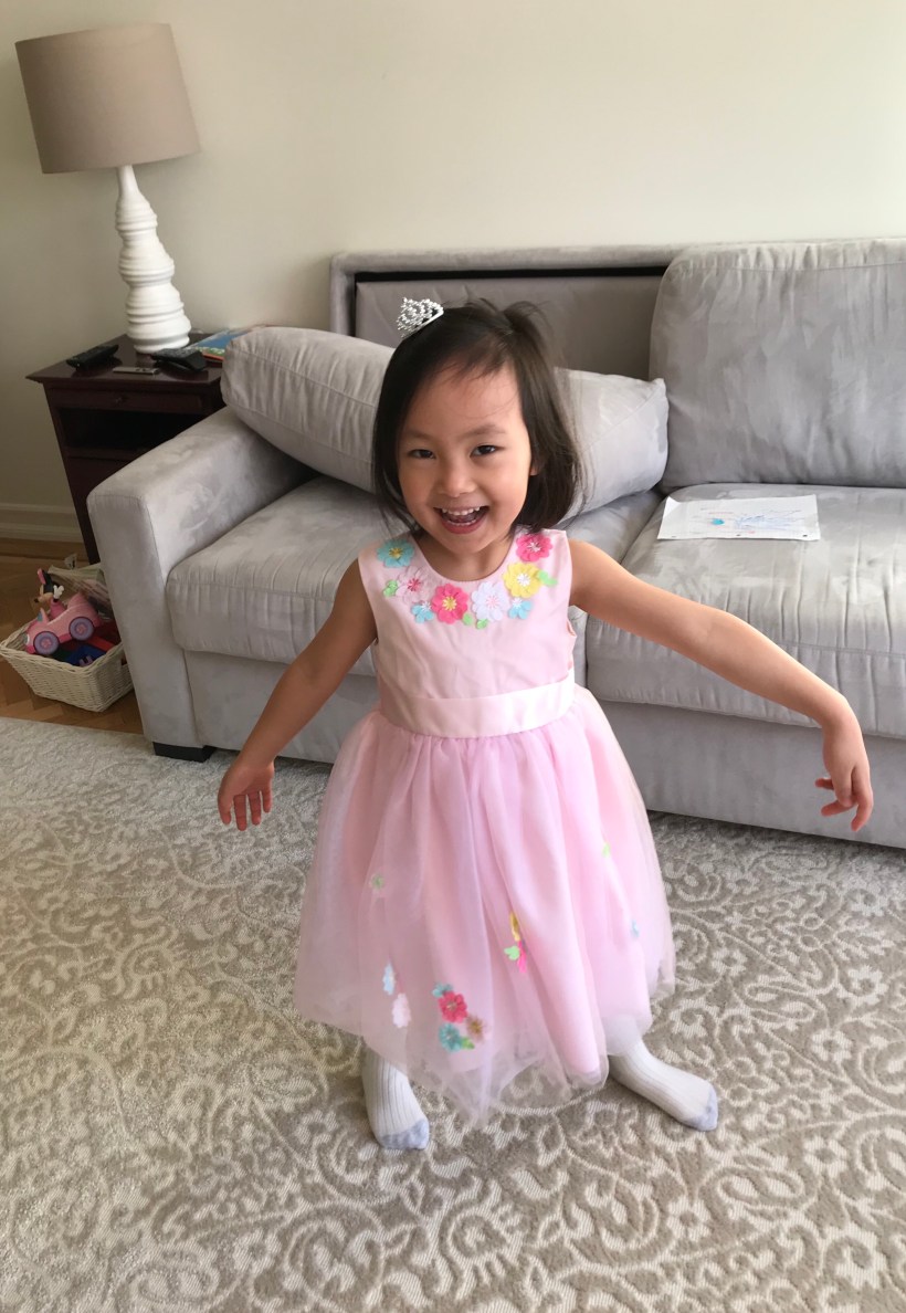 復活節長週末,我們去 outlet 逛街購物,Chelsea 跟著阿公、阿嬤一路走走看看,自己挑了一雙球鞋跟洋裝,一回家就急著換上新衣服跳舞表演。