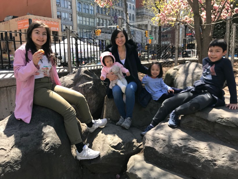 週末天氣晴朗,我們全家出門散步,第一站先到 Chelsea 最愛的聯合廣場公園玩。