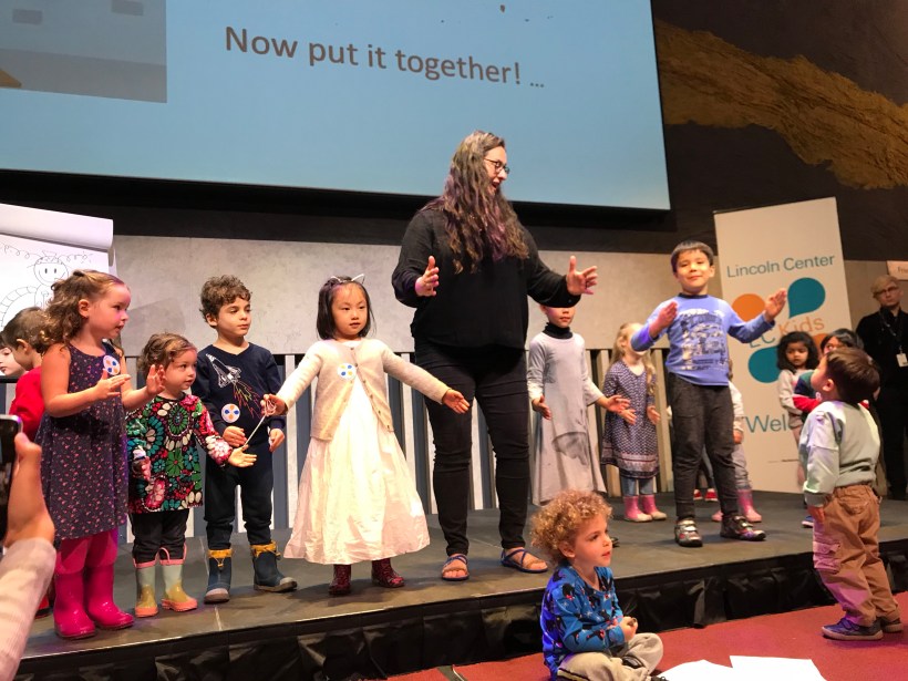 這週末,紐約市立有許多小孩子的活動。週六一早,Chelsea 先來參加林肯中心的故事會,一本機器人故事繪本的作者來給小朋友講她的創作,會後邀請大家上台學跳機器舞,Chelsea 一馬當先地自告奮勇上台和作者一起表演。