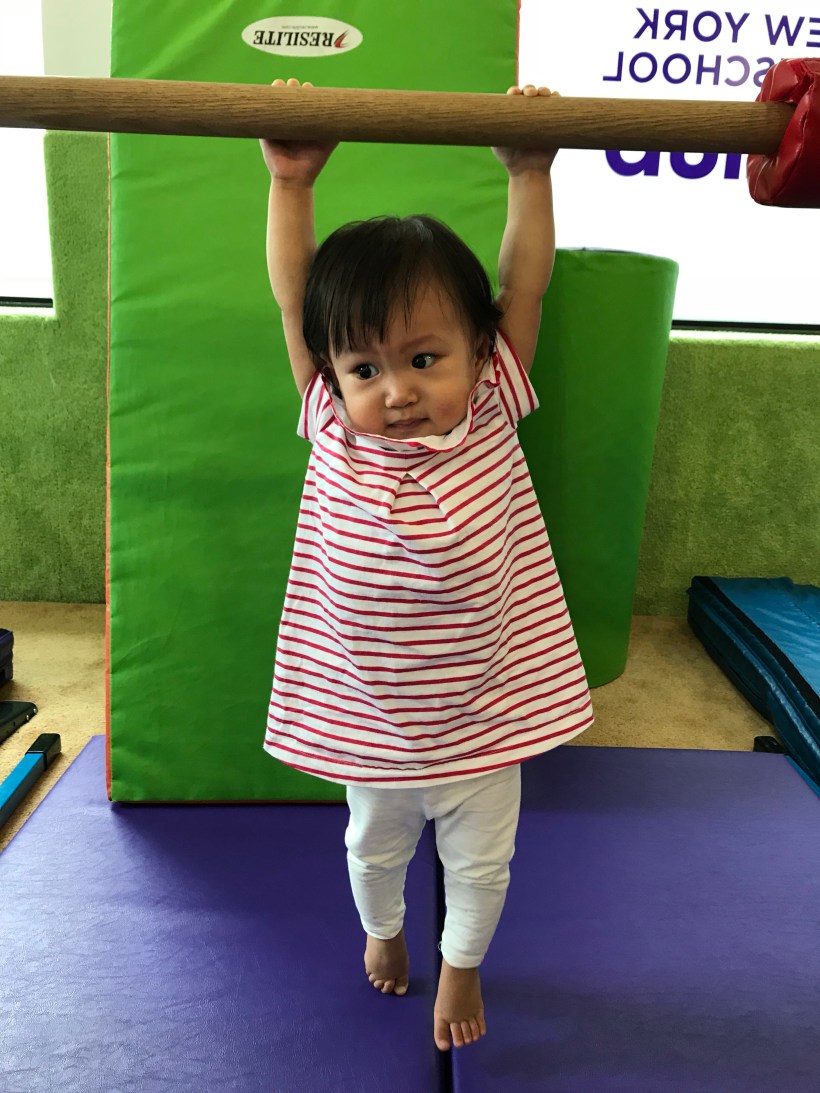 Florence 也在一旁練習拉單槓,臂力很強,一次可以撐上好幾秒。很喜歡跟小朋友玩的 Florence,一次見到許多哥哥姐姐,高興地想參與大家的活動。
