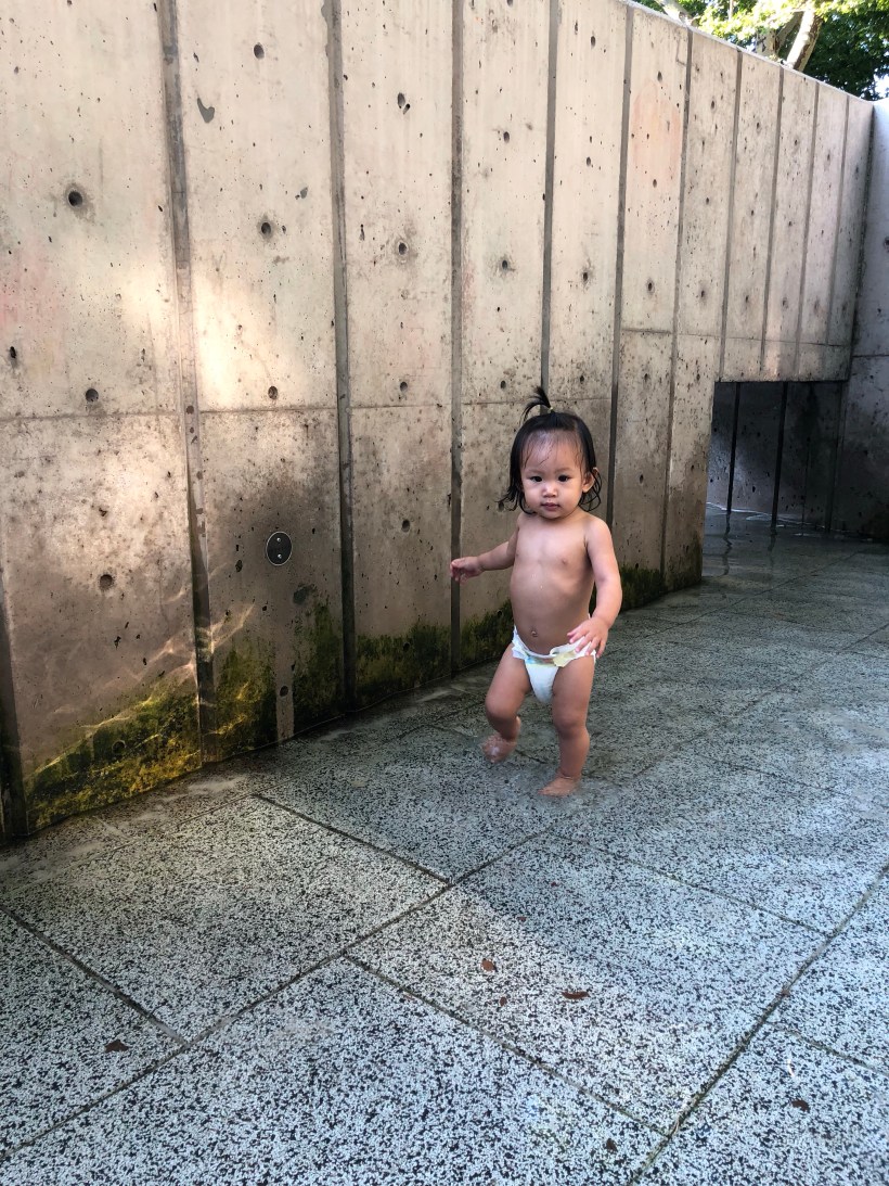 Florence 睡完午覺,又來到中央公園的戲水區玩,每次都得玩到全身濕透才甘心。