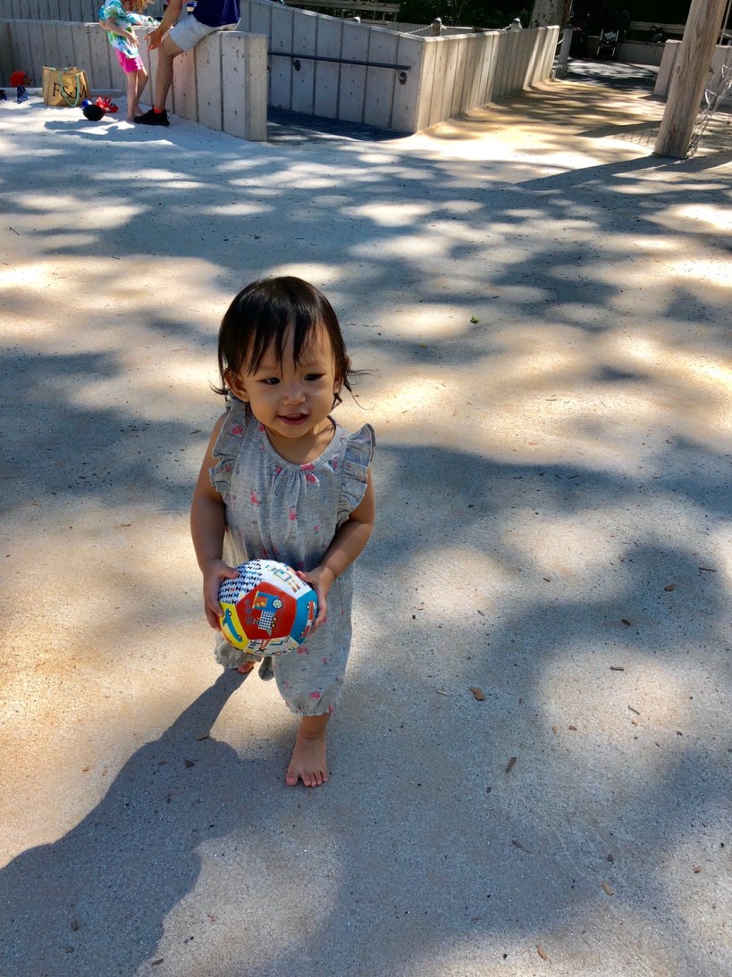 這週末,天氣晴朗,我們帶著 Chelsea 跟 Florence 姐妹倆到中央公園玩。Florence 開心地在兒童遊戲區玩球。