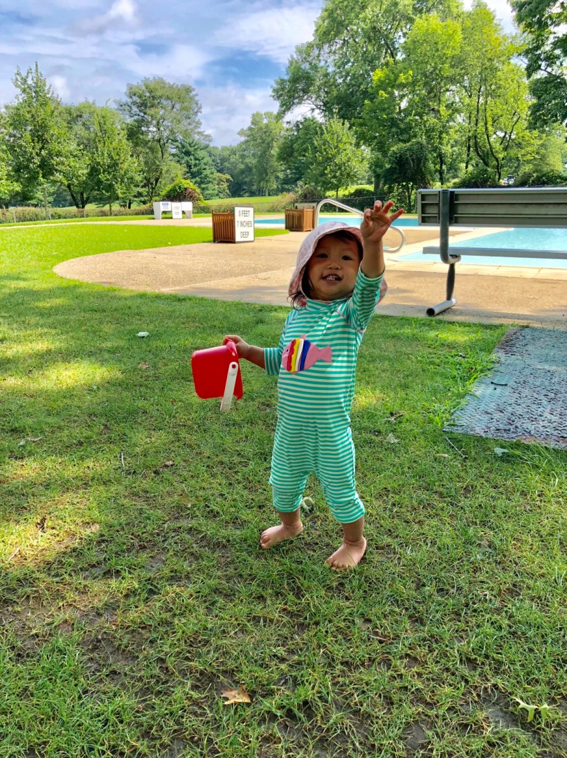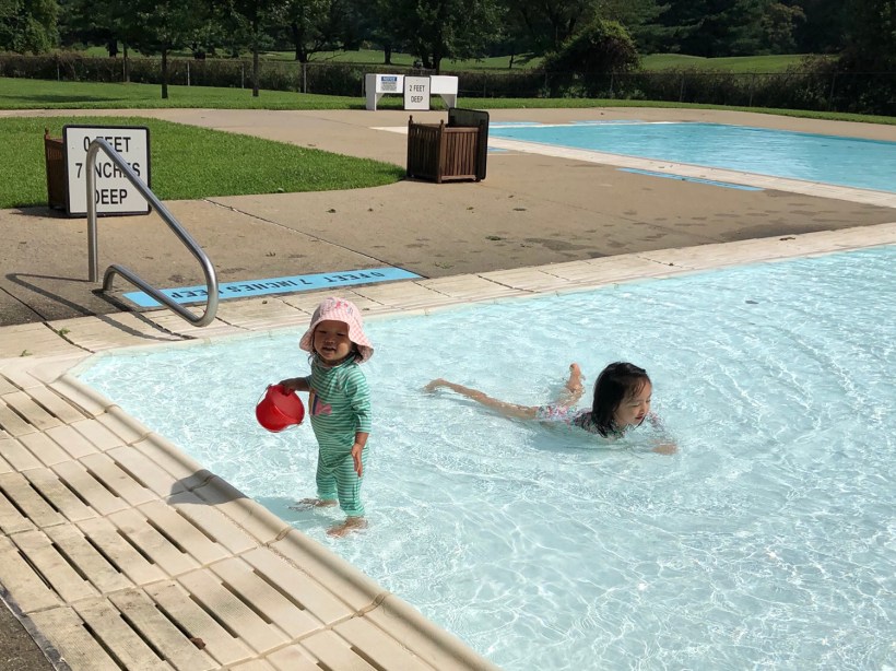 這週末,Chelsea 的好朋友 Amy 在紐約郊區 Scarsdale 的社區活動中心舉辦生日派對,活動中心的環境優美,有許多給小孩子玩水游泳的小池子。姐妹倆ㄧ來,立刻換上泳衣跳下水玩。