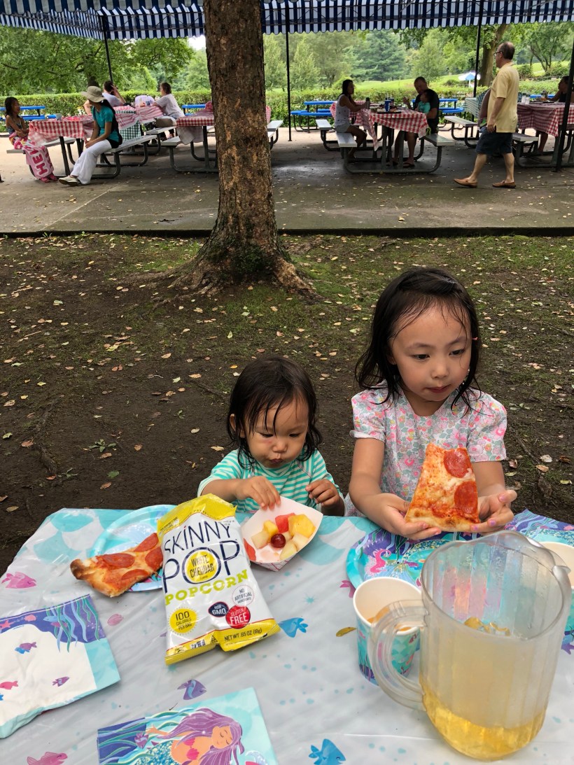 玩累了,正好到小朋友的午餐時間,姐妹倆大快朵頤、品嚐壽星 Amy 準備的食物,並等著吃生日蛋糕。