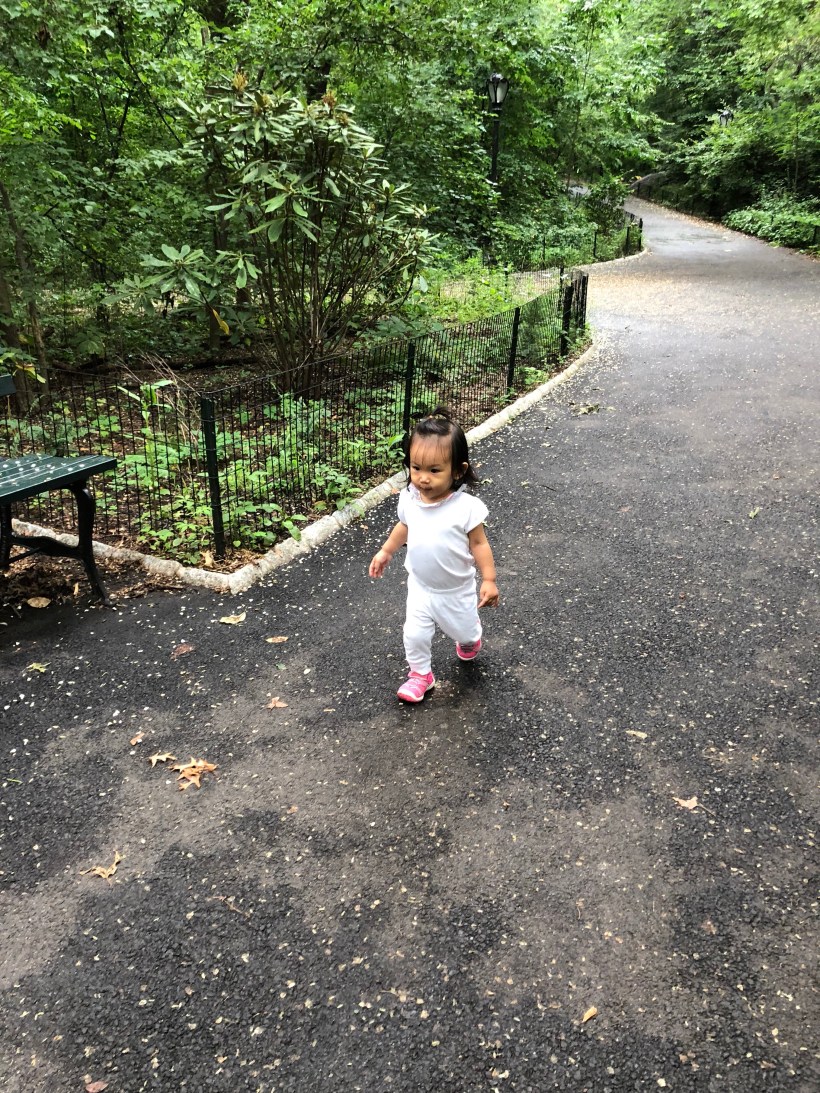 Florence 現在走路越走越遠,自己在中央公園裡散步,十分得意。