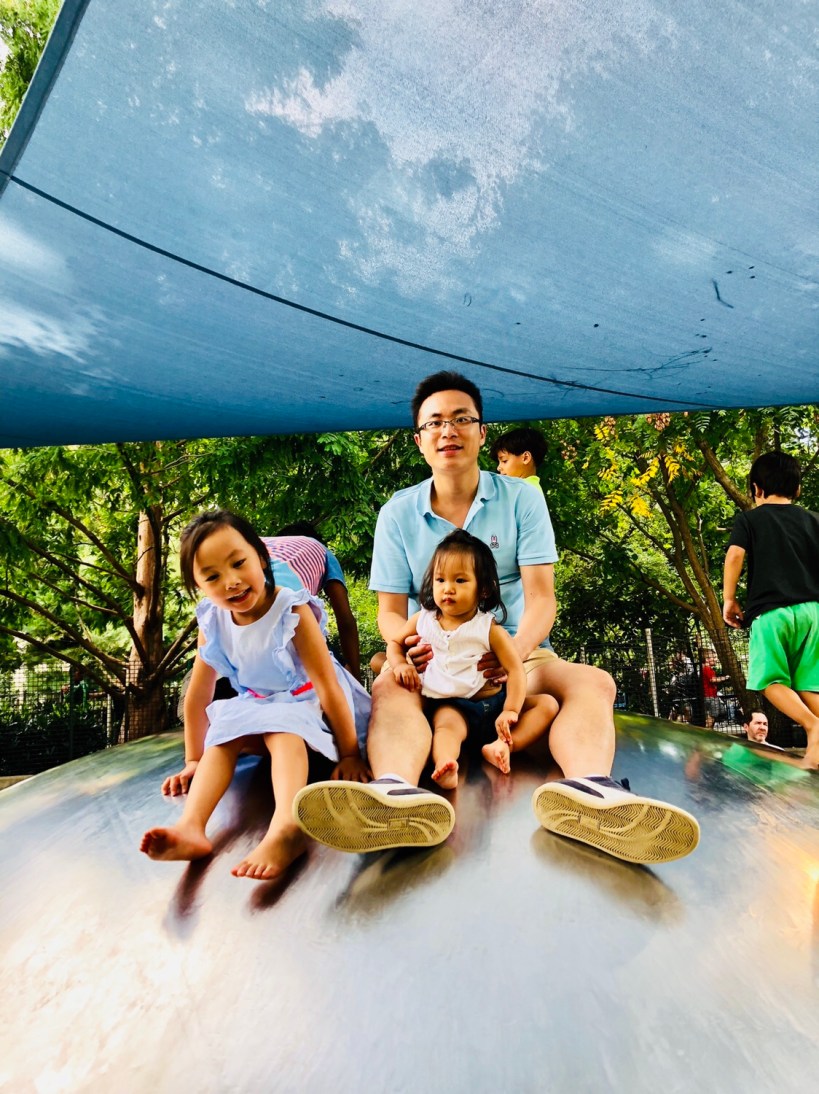 我們帶著精力旺盛的三個小孩去聯合廣場公園的遊戲區好好玩耍一番,Chelsea 跟 Florence 爬上了公園裡的大金屬球,很得意地坐在球上拍照。