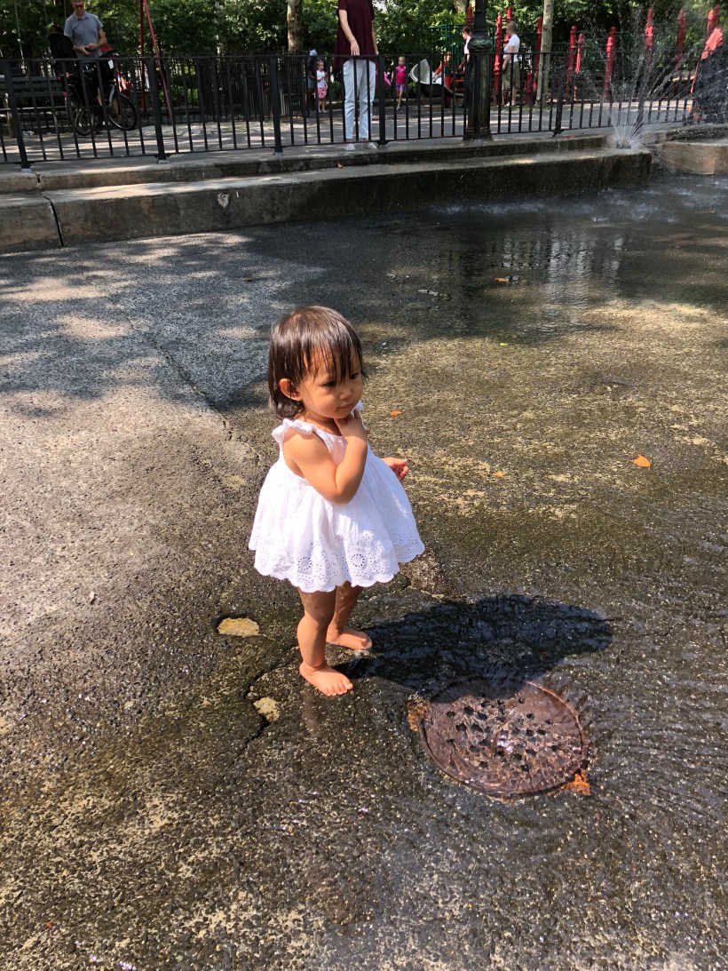 Chelsea 跟 Chloe 也喜歡到中央公園的遊戲區玩,這天兩人在小水池裡玩水,玩得不亦樂乎。