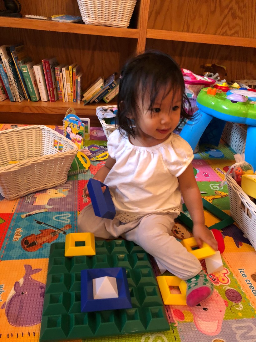 Florence 待在家裡玩積木,手很巧的 Florence,對於許多需要精細動作的玩具都很拿手。