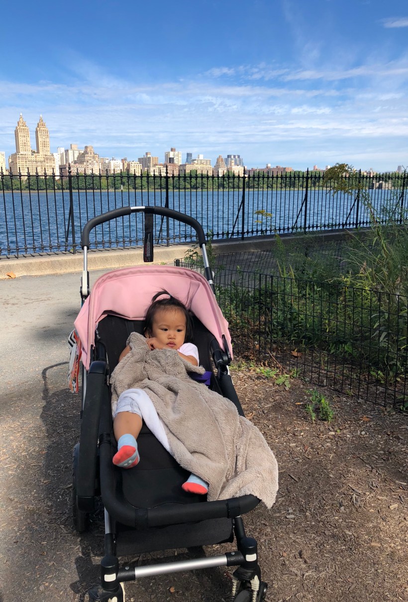 這週末,Chelsea 一早就跟媽媽出門去上小提琴課,Florence 則在中央公園裡玩,等姐姐下課。在中央公園裡散步來到水庫旁,正好對面是紐約著名的雙塔大樓 – the Eldorado,Florence 來拍張照留念。