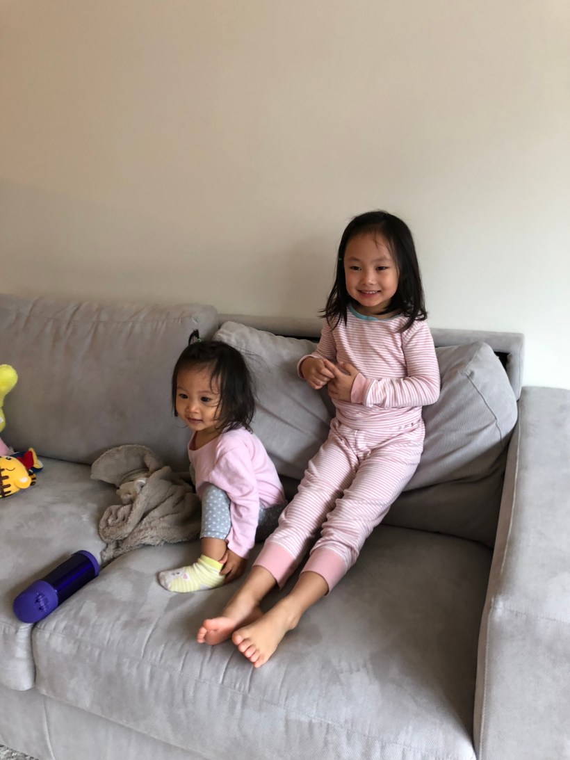 上了一個早上的課,Chelsea 回家吃飯休息,Florence 最喜歡跟姐姐在家裡一起玩耍打鬧。